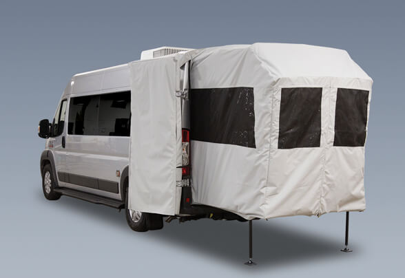 People are working away from the office more and more these days. The rear bed platform converts into a table height desk or expanded kitchen countertop area providing travelers with more room to spread out and get things done. Find new creative energy, inspiration, or tranquility just by opening the back doors.