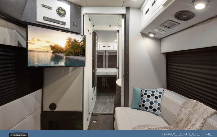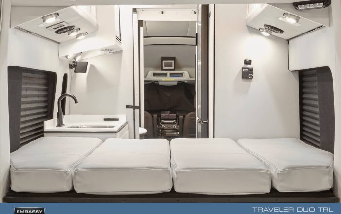 Factory photos of 2020 Dolphin SL with gray and white interior.